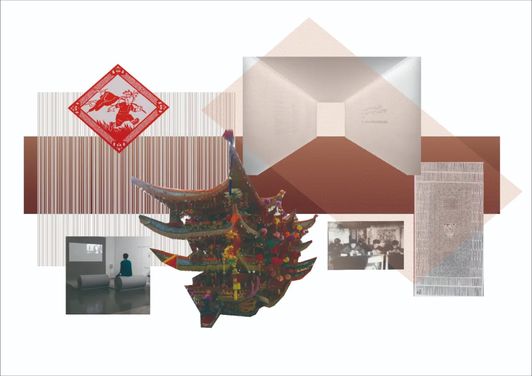 在展览陈列方面,将纸切割成细条作为隔断,与刻纸作品相呼应,同时在视觉上带来轻盈、均衡的效果。采用红色、灰色作为空间主色调,整体营造出舒适的空间氛围。