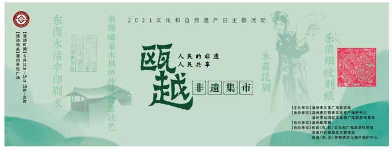 瓯越非遗集市由温州市文化广电旅游局主办,温州市非物质文化遗产保护中心、温州市龙湾区文化和广电旅游体育局承办,活动旨在推进“非遗在社区”工作,致力打造“多维度”互动体验,让观众“零距离”感受传统文化的魅力,让非物质文化遗产回归生活,走向年轻人的视野。今年的主题是“人民的非遗 人民共享”,在2021年“文化和自然遗产日”期间举办,进一步提高人民群众非遗保护意识,传承、弘扬中华优秀传统文化,营造非遗保护良好社会氛围。