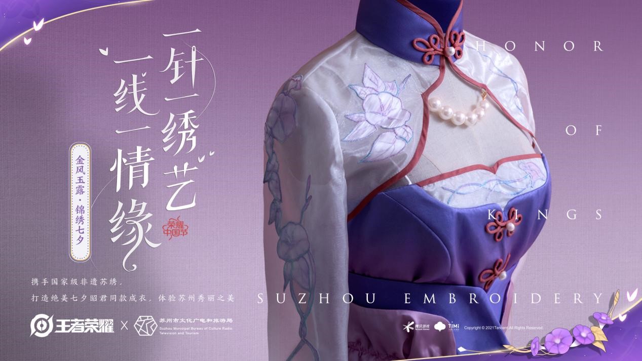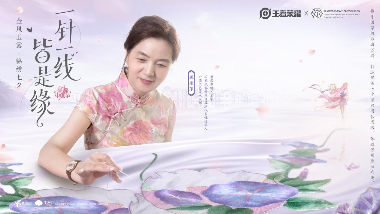 作为传统文化的创新载体,《王者荣耀》与苏州市文化广电和旅游局一拍即合,并邀请到姚建萍老师,参与王昭君七夕皮肤的设计指导,带领玩家在一针一线中感受苏绣文化的魅力。
