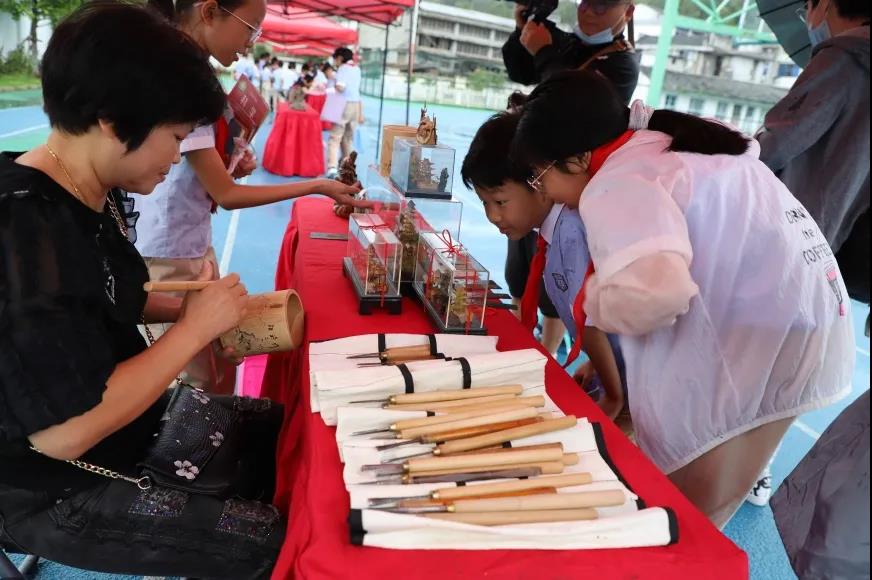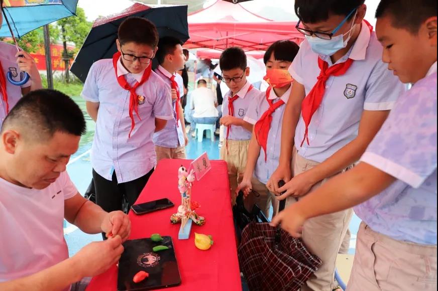 本次手工技艺和非遗创意产品现场展示包含了瓯窑、瓯绣、竹雕、米塑、泥塑、糖画、弹棉,各年级同学在班主任的组织带领下,有序参观学习非物质文化遗产,细细品味文化内涵,深深感受文化魅力。