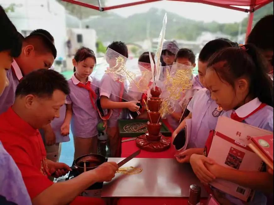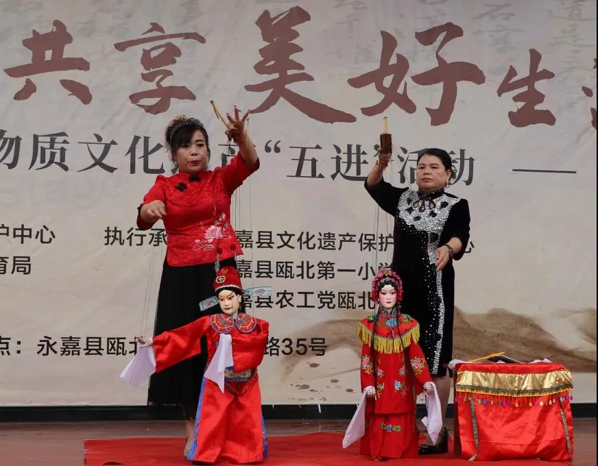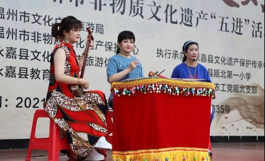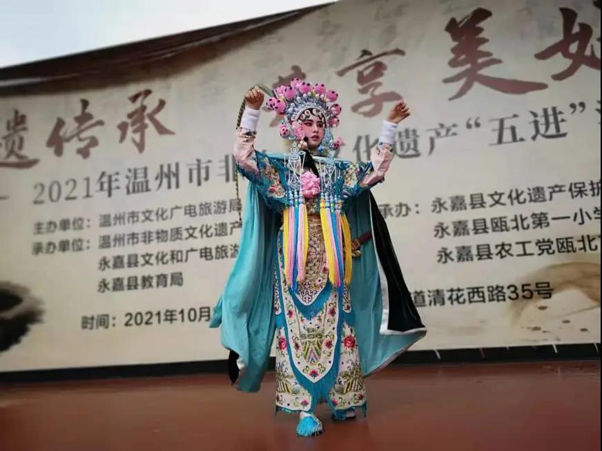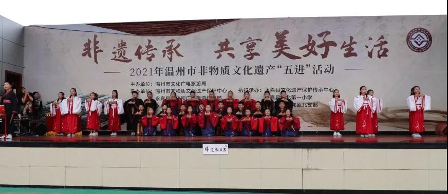 为更好地传承和弘扬中华民族优秀传统文化,提高广大青少年对传统文化的认识,丰富校园文化生活。由温州市文化广电旅游局主办,温州市非物质文化遗产保护中心、永嘉县文化和广电旅游体育局、永嘉县教育局承办的“非遗传承 共享美好生活——2021年温州市非物质文化遗产‘五进’活动”在瓯北一小的校园火热进行。