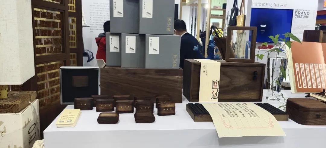瑞安市毕昇文化发展有限公司的展位吸引了众多观众驻足围观,并现场体验活字印刷术。展位负责人表示,展品主要有活字库、魔方转盘、党旗誓词、活字笔筒等,旨在让更多人来体验瑞安至今还在传承的木活字印刷术,让更多设计师们为活字艺术提供灵感,融入生活创造出更多生活相关的活字艺术品。