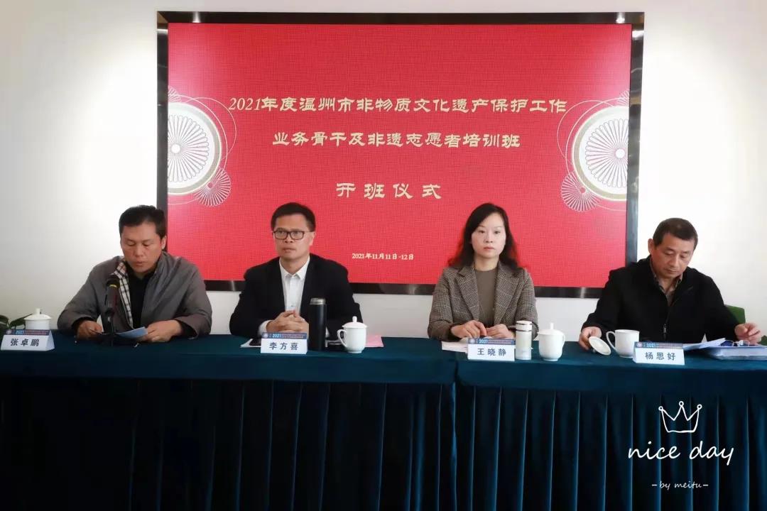 11月11日至12日,由温州市非物质文化遗产保护中心主办,乐清市文化遗产保护中心承办的2021年温州市非物质文化遗产保护工作业务骨干及非遗志愿者培训班在乐清国际研学基地举行。全市60余名非遗保护业务骨干及志愿者参加了培训。