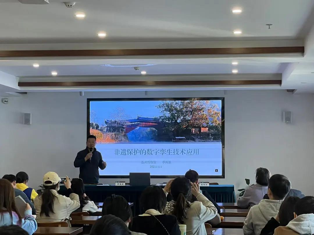 此次培训特邀了省文旅厅优秀专家季海波、温州大学教授林亦修、温州市委组织部党建宣讲名师沈童翔就《非遗保护的数字孪生技术应用》、《温州非遗传承发展探讨—基于非遗评估调查》、《非遗专项志愿者培育及项目策划与执行》等课题作了详实的业务培训和指导,并结合当前非遗保护工作形势、热点与实际,对2021年开展各项评估工作、志愿者工作及数字化工作进行了分析解读,理论与实践并重。