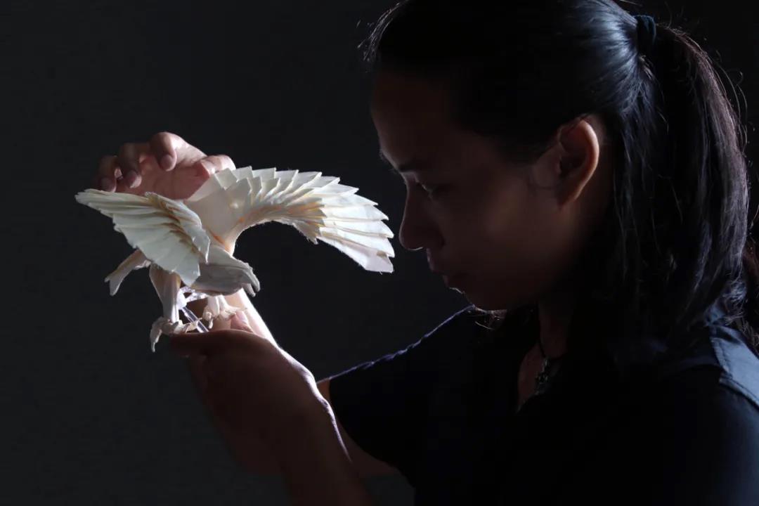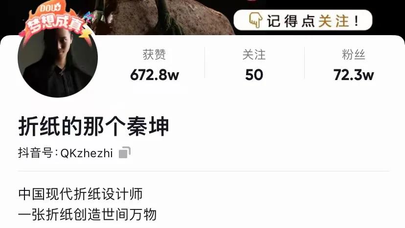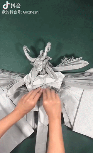 如今的他,已是著名的中国现代折纸设计师,在抖音上拥有672.8万赞、72.3万粉丝。在他灵巧的双手中,一张张正方形的纸张飞舞折叠,不撕、不裁、不用一滴胶水,就能变化成惟妙惟肖、栩栩如生的折纸作品。
