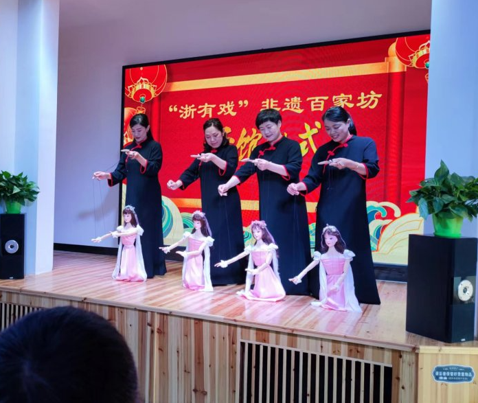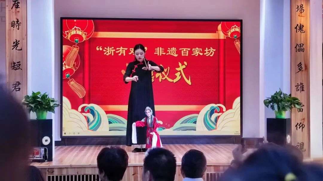 活动中,雷全勉、郭素琴为“浙有戏”非遗体验馆揭牌。揭牌仪式结束后,领导嘉宾参观体验馆并观看演出。
