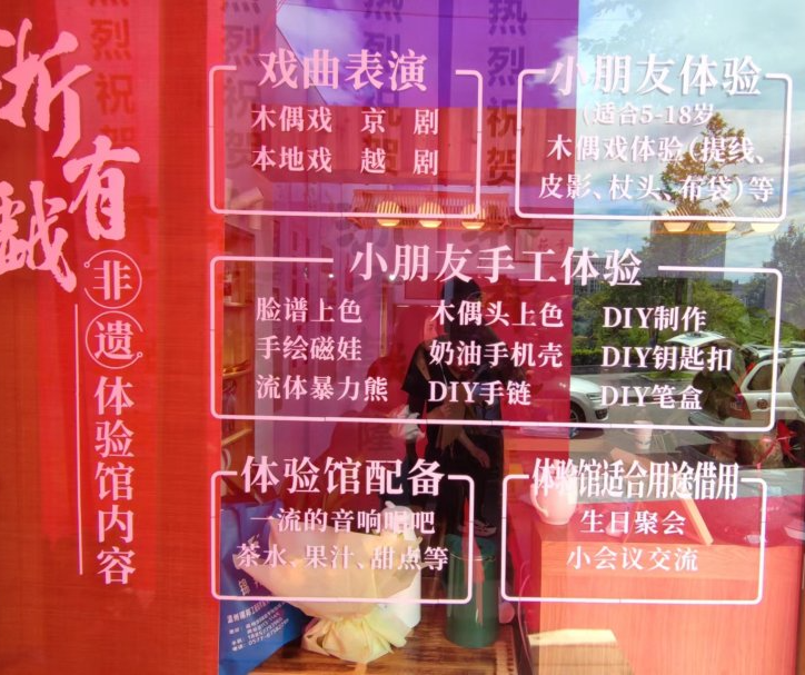 “浙有戏”非遗体验馆由提线木偶戏市级非遗代表性传承人魏朝浩创办,是我县首批非遗百家坊创建试点单位之一,馆内设有木偶戏演出、体验、木偶头彩绘、DIY制作等观看体验内容。开馆后将常态化开展演、讲、示、教、研等非遗传承、传播和体验活动,市民和游客可在此近距离感受“指尖上的泰顺非遗”。