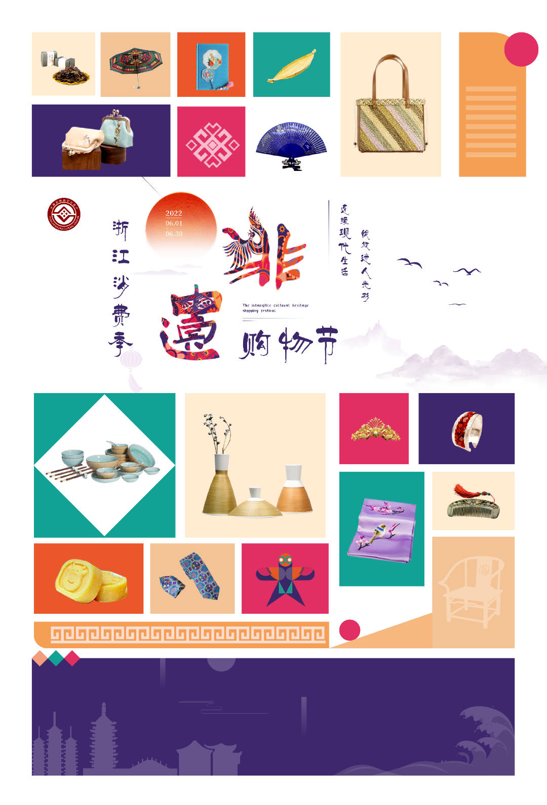 为认真贯彻落实习近平总书记关于非物质文化遗产保护重要指示批示精神,根据文化和旅游部非物质文化遗产司《关于组织开展 2022 年“非遗购物节”活动的函》要求,结合我省非遗资源和品牌活动特色,将于6月1日至6月30日期间联合浙江广播电视集团新蓝网组织开展 2022 年“非遗购物节·浙江消费季”活动,进一步弘扬中华优秀传统文化,推动非物质文化遗产保护成果惠及更多人民群众,助力实现共同富裕。“非遗购物节·浙江消费季”是2022年“文化和自然遗产日”的重要组成部分,主题为“连接现代生活 绽放迷人光彩”。