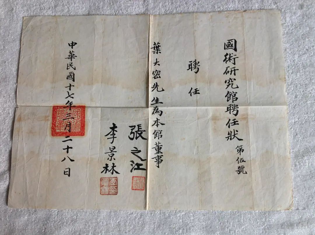 1928年3月民国中央国术研究馆为叶大密颁发的董事聘任书