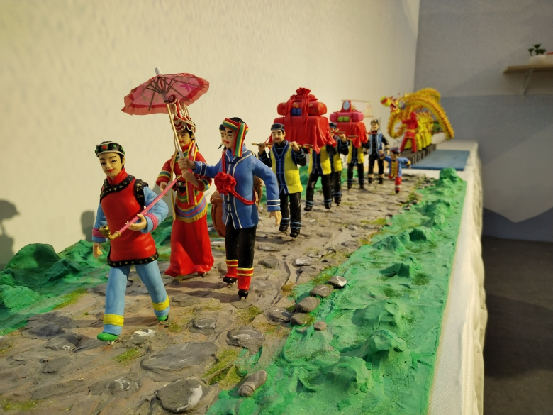 张甜清是泰顺县大安乡人,也是泰顺非遗“米塑”传承人。去年温州文博会上,他因米塑作品《三星堆黄金面具》而圈粉无数,更拿下了当年的创意金奖。今年文博会上,他不仅带来了多件新作——泰顺畲族婚俗、徐岙底古村落、碇步龙以及《五十六民族》米塑等,更首次进行现场签约,以产业对接的形式将非遗转化为现实生产力。