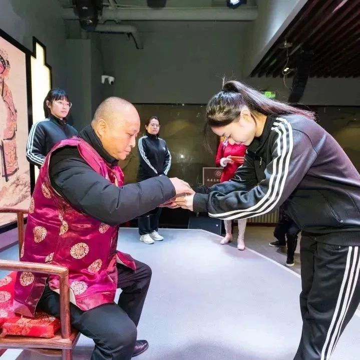 仪式现场,瑞安高腔项目省级非遗代表性传承人瞿昭安作为老师上台,接受了瑞安市越剧团青年演员王佳依、陈红、吕佳容的拜师礼。3名学生深情鞠躬,真情致敬。一杯清茶,一声老师,饱含情义万千。