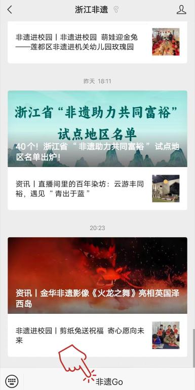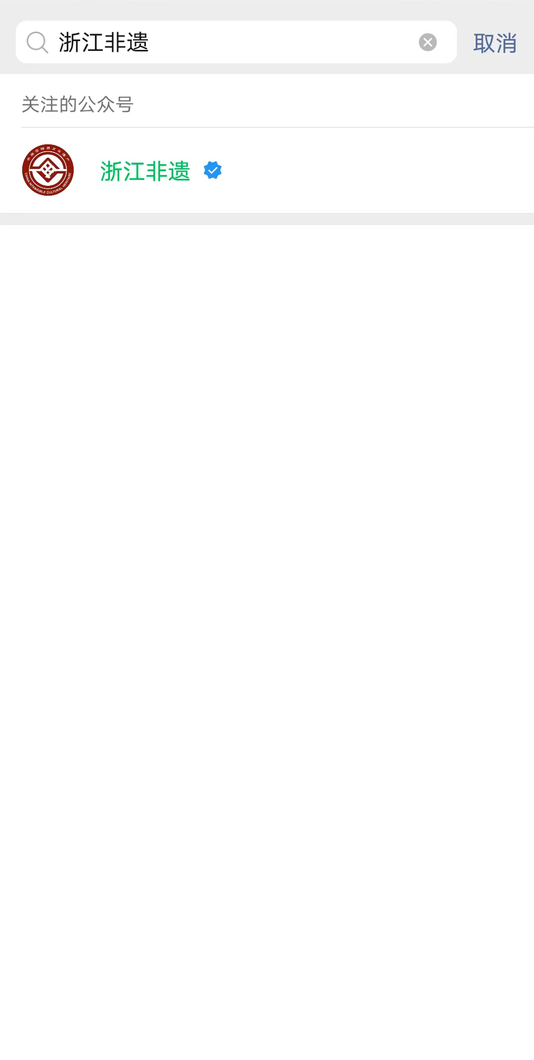 ①在微信搜索栏搜索“浙江非遗”进入公众号;