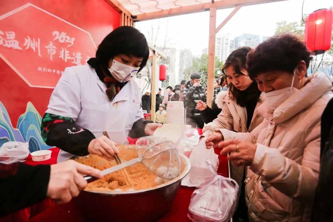 手捧肉燕鱼丸,接过暖暖的姜茶,身心涌现的暖意:阿红鱼丸、吹糖人、九层糕、永嘉麦饼、伯温烧饼等7种来自温州各地的非遗美食也汇聚于此,所呈现的是传承了多年的技艺,也是属于温州人从小到大味觉上最为眷恋的老“瓯味”,用美食展现着一座城市的风土人情。
